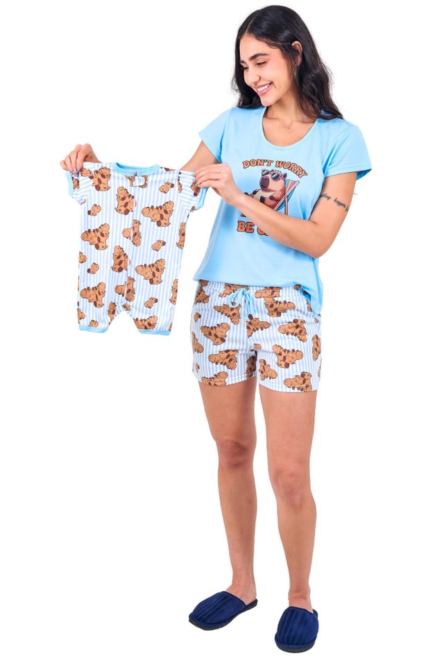 Não há nada mais fofo do que combinar o look de dormir com o seu bebê. O Kit Be Capy traz a tendência das capivaras em um design divertido e extremamente confortável, perfeito para criar memórias inesquecíveis e noites de sono tranquilas.
