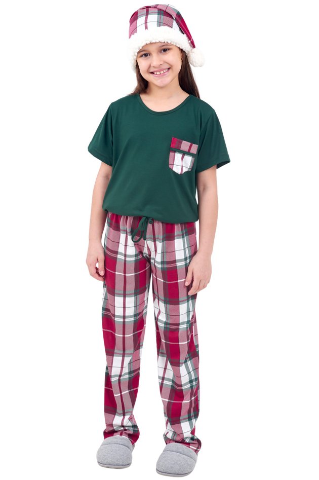 🎄 O Natal nunca foi tão confortável e estiloso para as meninas! O pijama infantil feminino de estampa xadrez é a peça ideal para celebrar as festas de fim de ano com muito charme.